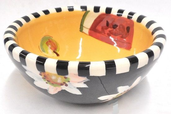 This pretty bowl is 6" wide by 2-1/2" tall. Click on photo to enlarge.