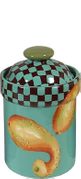 View a selection of patterns in this 5 1/4" wide by 7" tall canister. |  X-Large Canister5 1/4" wide by 12" tall Large Canister 5 1/4" wide by 9" tall Medium Canister 5 1/4" wide by 7" tall Small Canister 5 1/4" wide by 6" tall Decorate your counter while storing flour, sugar, cookies or anything else you can think of. Click photo for larger view. Individual pieces can be ordered below. $476.55 |