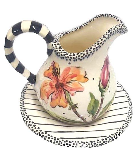This pretty set consist of a 6" tall pitcher and a 6-1/4" wide saucer. Click on photo to enlarge for details.