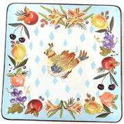 This lovely platter is 14" by 14" wide. Click photo to enlarge for details.